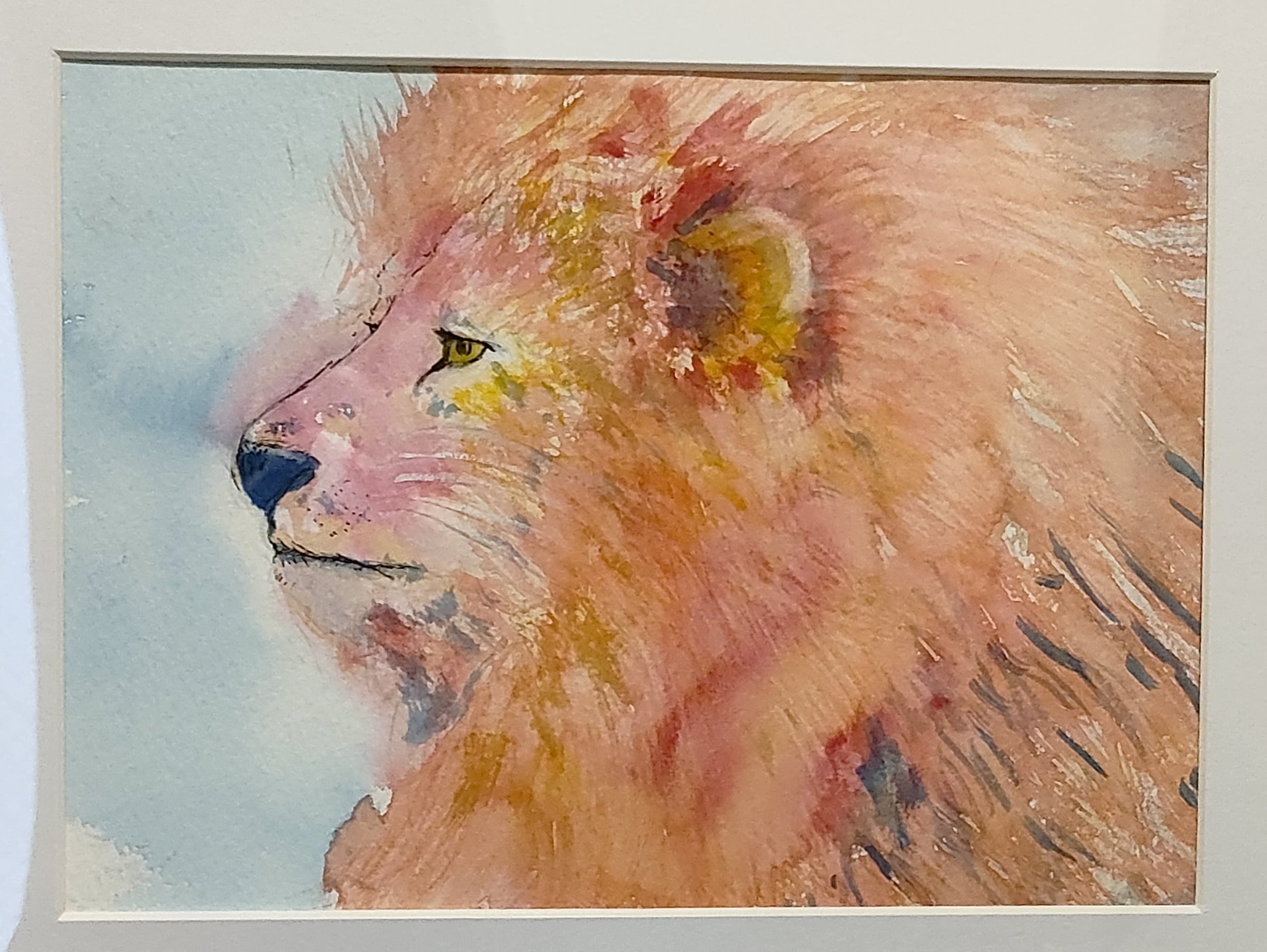 水彩絵の具で描いた、ライオンの横顔の原画作品です。