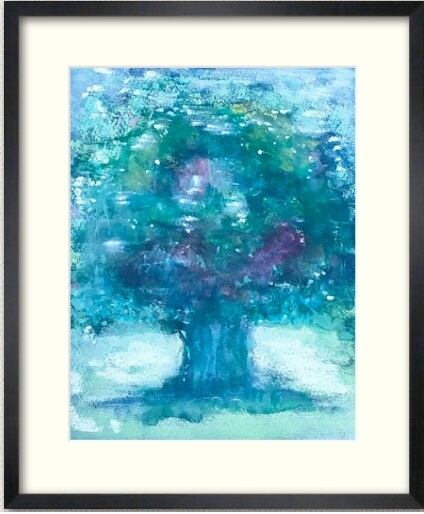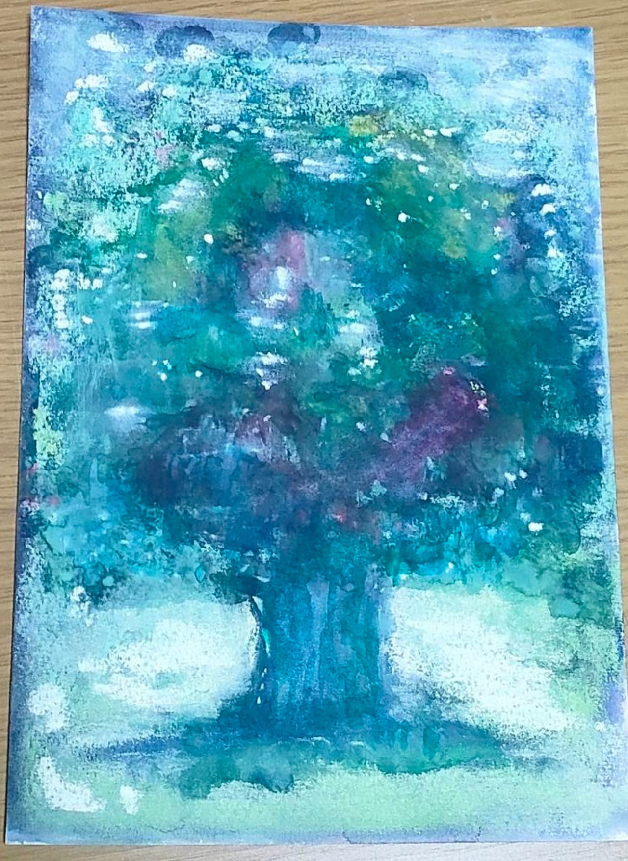 心惹かれる美しい樹木を水彩絵具とパステルで表現した作品です。