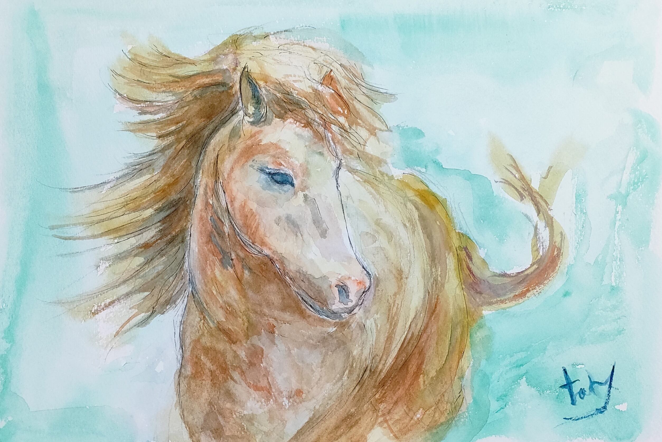 美しい馬の姿を水彩で表現した魅力あふれる作品です。F4サイズの紙に描かれたこの絵画は、柔らかな色合いが特徴で、風に揺れる草原の中での馬の力強さと優雅さを感じさせてくれます。多くの人の心に温もりをもたらすデザインに仕上げています。