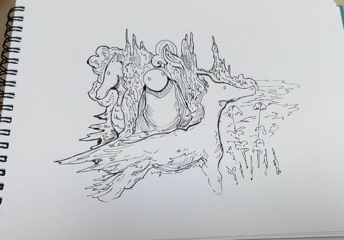 森の精霊と旅人が織り成す幻想的な世界を描いた作品です。F2サイズのペン画は、細部にまでこだわった繊細な描写が特徴で、自然の美しさと人間の探求心を表現しています。作品を通じて、静寂な森に響く旅人の足音や、木々の間に潜む小さな生命たちの息づかいを感じることができるでしょう。